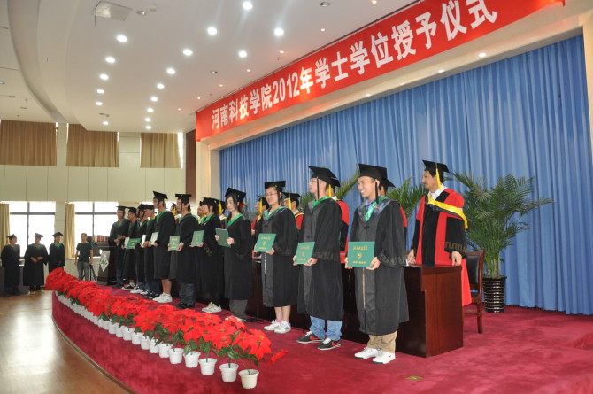 党委书记尤太生副研究馆员,院长胡建和教授,党委副书记徐兆栋副教授,副院长陈金山教授,副院长赵坤教授,动物科学系主任魏刚才教授,动物医学系主任马金友副教授出席学位授予仪式并在主席台就坐。全体辅导员和248名获得学士学位的毕业生也参加了该仪式。副院长赵坤教授主持了仪式。在雄壮激越欢快的国歌、校歌声中,正式开始了我院2012届毕业生学士学位授予仪式。副院长陈金山宣读了我院获得“2012年河南省优秀毕业生”的学生名单,获得校级2012年优秀毕业生学生名单,宣读了我院2012届248名获得学士学位的毕业生名单。各位领导和老师为我院获得2012年省级、校级的优秀毕业生颁发了证书,为获得学士学位的毕业生颁发了学士学位证书并为他们正冠拨苏。我院教学秘书宁红梅博士作为教师代表发了言,张贞洁代表全体毕业生发了言。动科太阳城线上