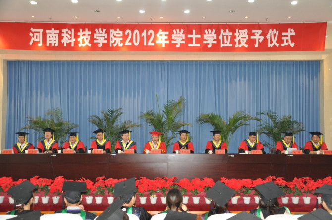 2012届毕业生学士学位授予仪式在新行政楼三楼报告厅隆重举行,副校长刘兴友教授,党委组织部部长王三虎教授,校长助理、研究生处原处长、正处级调研员李敬玺教授,校级特聘教授、博士生导师潘耀谦教授,动科太阳城线上