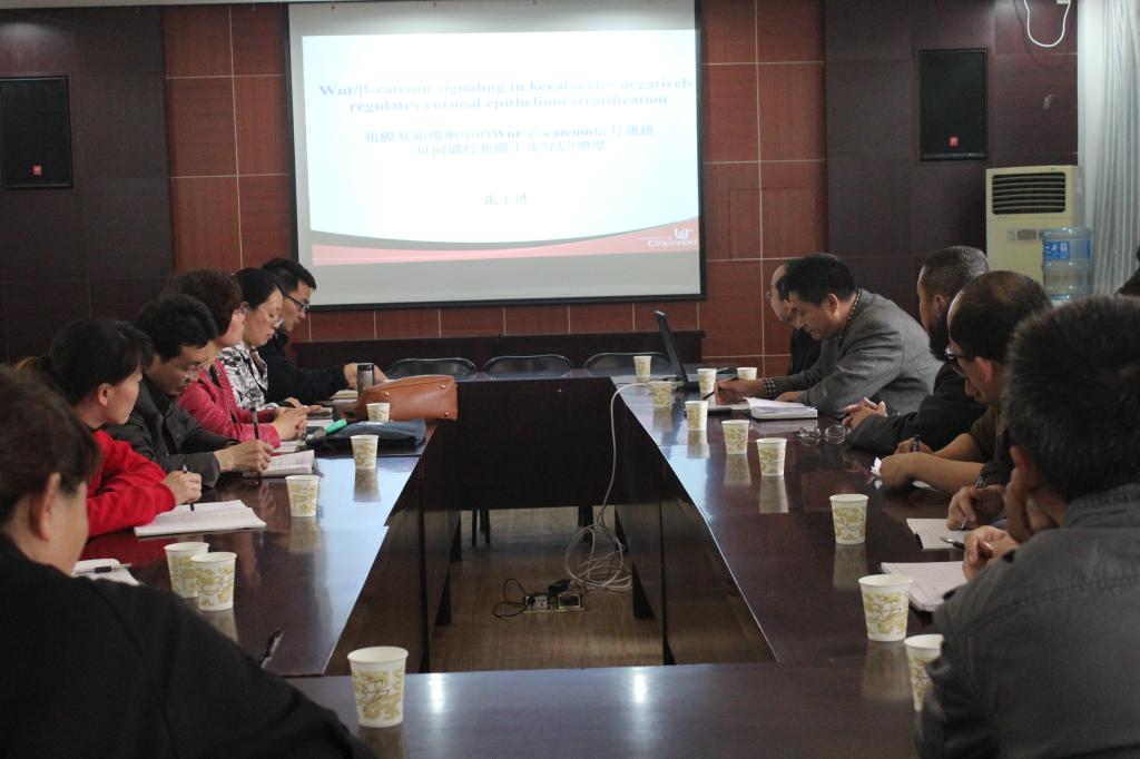 邀请,美国辛辛那提大学副研究员张玉进博士在动科院E302会议室做了题为:“角膜基质细胞中的Wnt/β-catenin信号通路负向调控角膜上皮分层增厚”的学术报告,报告会由动物科学太阳城线上