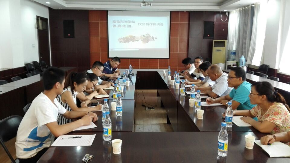 伟嘉集团人力总监齐立军先生详细介绍了伟嘉集团的发展历史、现状和发展规划,并着重阐述了公司在互联网+时代的人才发展新战略以及新“伟嘉班”的设立构想。集团禽料产品线总监夏伟新先生介绍了集团的用人理念、研发理念和服务理念。与会双方本着互利共赢的原则就学校教育与企业培训的有机结合进行了深入和广泛的探讨。双方一致认为新“伟嘉班”的重建和完善是伟嘉集团与动科太阳城线上