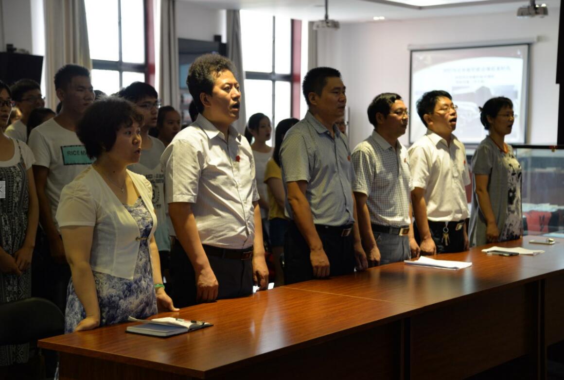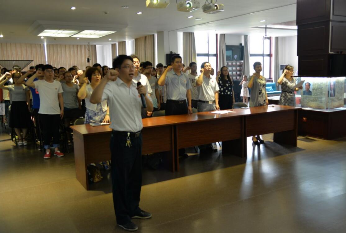 党委主办的新党员“入党宣誓”暨老党员“不忘初心,重温入党誓词”特色党日活动在校国情国史体验馆举行。我院党委委员、全体教工党员、学生党员以及2016年新发展党员一起参加了活动。