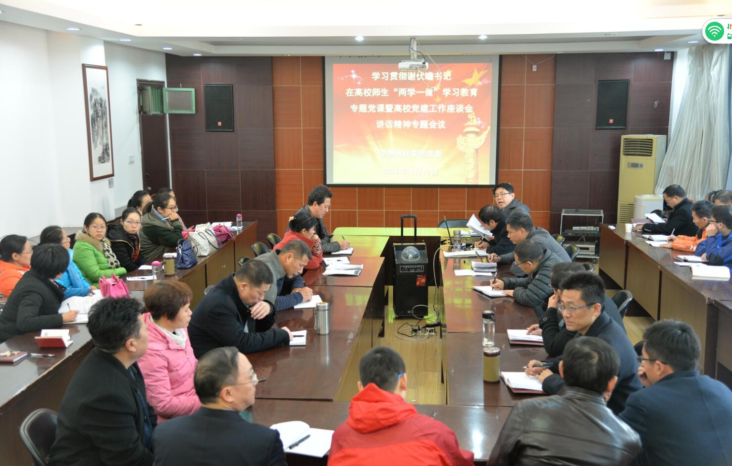 11月10日,我院在E302会议室组织开展“学习谢伏瞻书记在高校师生‘两学一做’学习教育专题党课暨高校党建工作座谈会上重要讲话精神”主题活动,全体教师参加了会议。