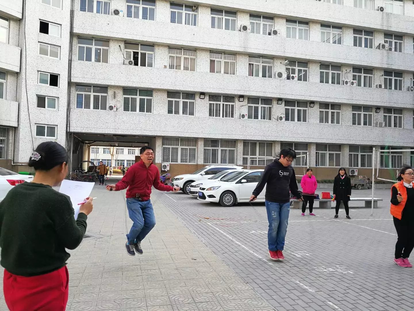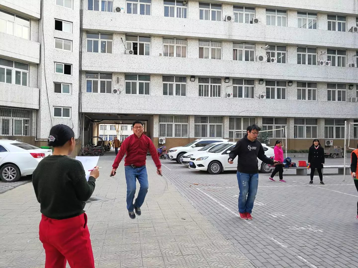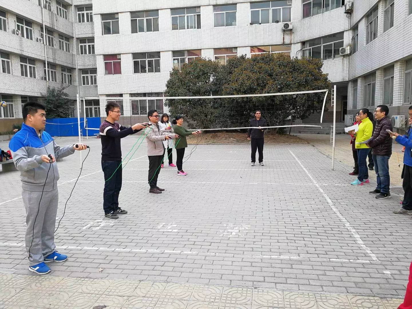 分工会于3月7下午在实验楼天井广场举行了教职工跳绳、踢毽子团体赛。此次比赛由动物遗传育种教研室组织策划。