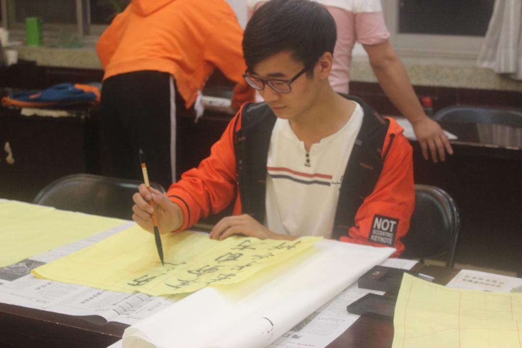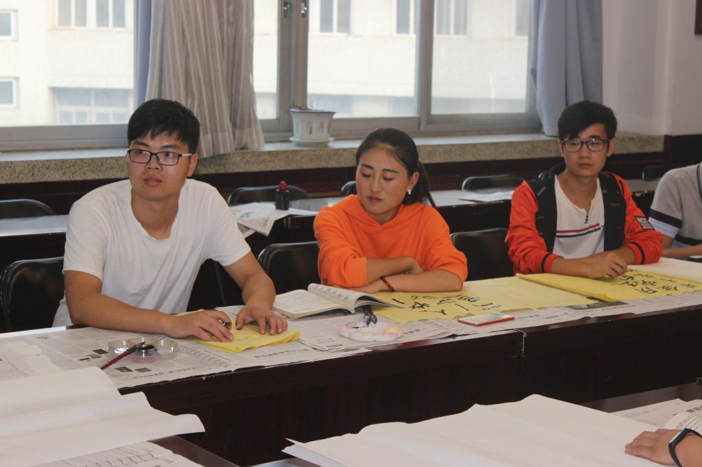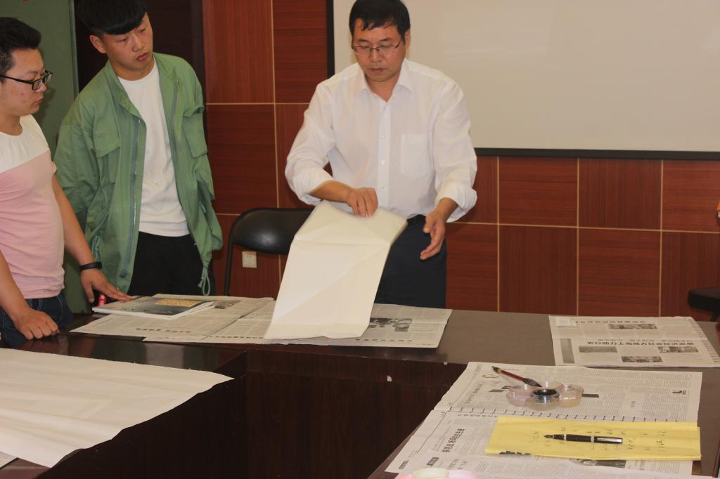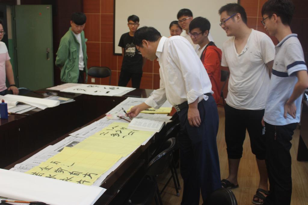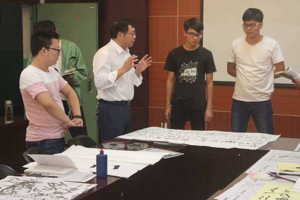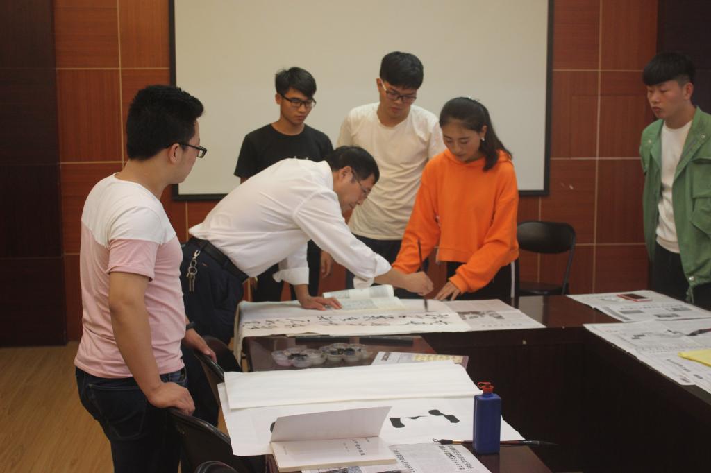 为了继承和发扬祖国的传统文化,弘扬书法艺术,丰富校园生活,我院于9月29日下午四点在E302会议室举行了以“庆祝国庆节、喜迎十九大”为主题的毛笔书法现场比赛。我院党委书记尤太生现场指导并示范。比赛结束后,尤太生书记结合本次活动主题和书法技巧传授,为大家上了一堂精彩的“书法党课”。