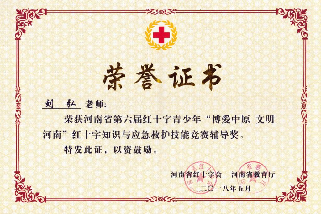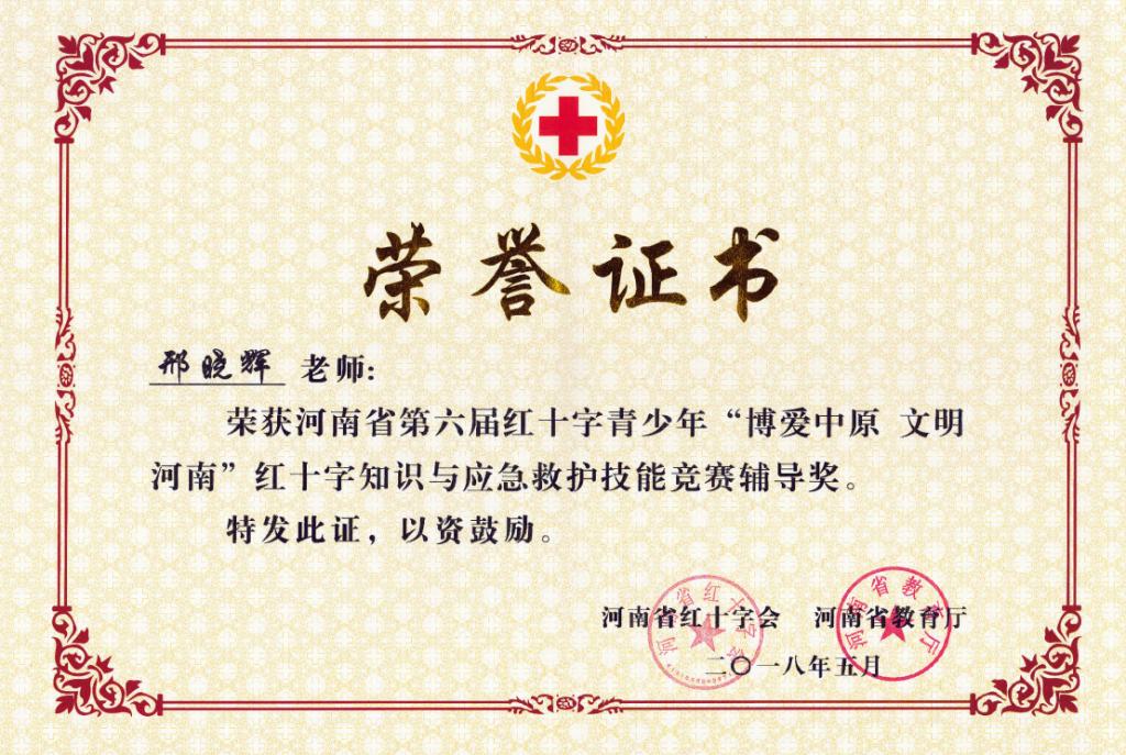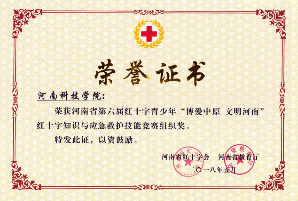 近日获悉,由河南省红十字会、省教育厅举办的第六届"博爱中原文明河南"红十字知识与应急救护技能竞赛于5月上旬在新乡医太阳城线上