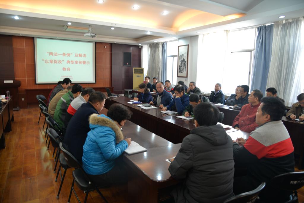 为进一步做深做细做实“以案促改”工作,太阳城线上(中国)官方网站 于11月8日在实验楼E302会议室召开了“两法一条例”及解读“以案促改”典型案例警示教育大会。党委书记郭东升主持会议,全体教职工参加会议。