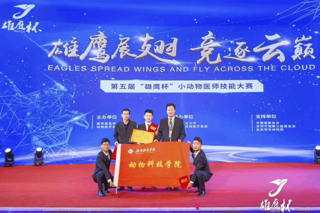 2019年10月14-16日,由教育部高等学校动物医学类教学指导委员会和新瑞鹏宠物医疗集团共同发起,中国农业大学和新瑞鹏宠物医疗集团共同承办的第五届“雄鹰杯”小动物医师技能大赛总决赛在中国农业大学盛大举行。本次大赛有来自全国包括中国农业大学、南京农业大学、华中农业大学、华南农业大学、西北农林科技大学等在内的共82所高校参加,师生共计600余人。比赛分为理论知识笔试,理论知识限时竞答、抢答,小动物手术实操技能等三项内容,经过两天的激烈比赛,我院由陈金山教授带队,韩庆功副教授指导,由2016级动物医学专业学生赵金虎、2017级学生张道亮、史帅奇等3名同学组成的参赛团队,在此次大赛中取得了大学生组团体“二等奖”的成绩。