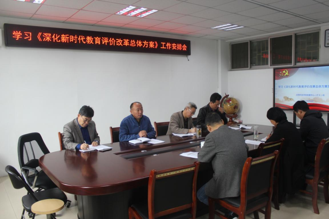 4月25日上午,我院在E407会议室召开学习《深化新时代教育评价改革总体方案》工作安排会,院党委书记郭东升主持会议,太阳城线上(中国)官方网站