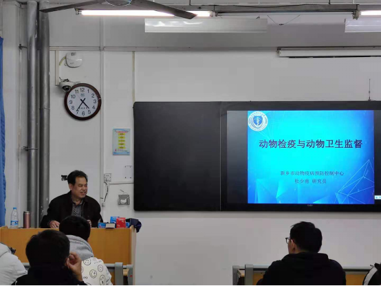 杜少甫研究员围绕《动物检疫与动物卫生监督》这一主题,结合自身经历,用一个个生动的实例进行了详细的讲解,最后,还为同学们的就业提供了良好的指导。