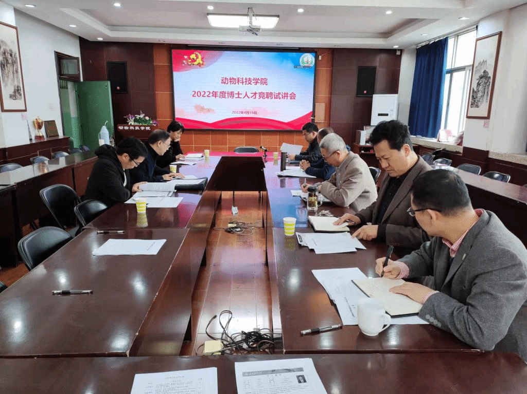 、广西大学、华南农业大学、河南农业大学、甘肃农业大学,涵盖动物营养与饲料科学、动物繁殖与遗传育种、临床兽医学等专业,经过试讲、评委随机提问、答辩等环节,从形象气质、语言表达、教学内容、教学技能、科学研究成果及潜力等多方面考察,最后经民主评议,顺利完成我院第一轮2022年高层次人才引进招聘工作。