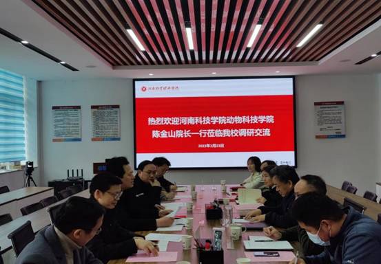 副院长陈金山教授、专业负责人苗志国教授、动物营养教研室主任刘长忠教授、动物遗传育种与繁殖教研室主任张晓建副教授、动物生产教研室支部书记李月涛副教授、教研室主任谢红兵副教授、滕战伟博士等一行7人赴河南牧业经济太阳城线上