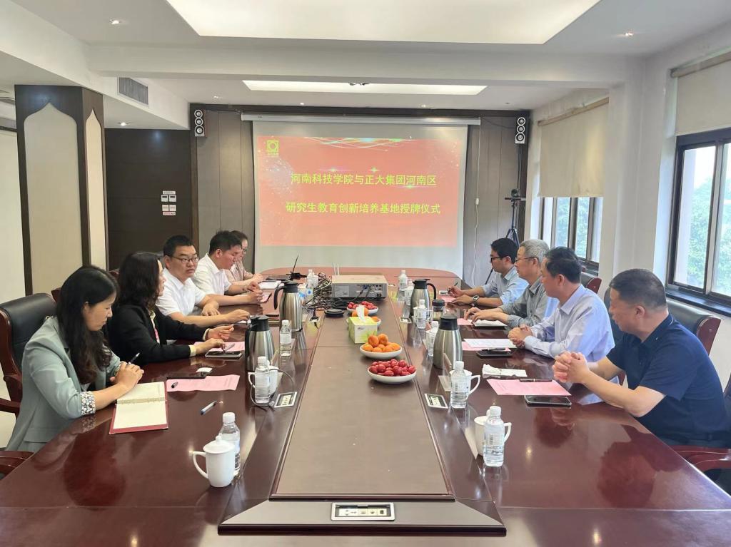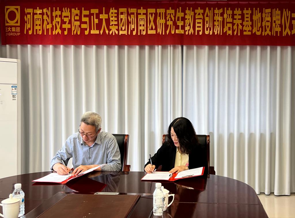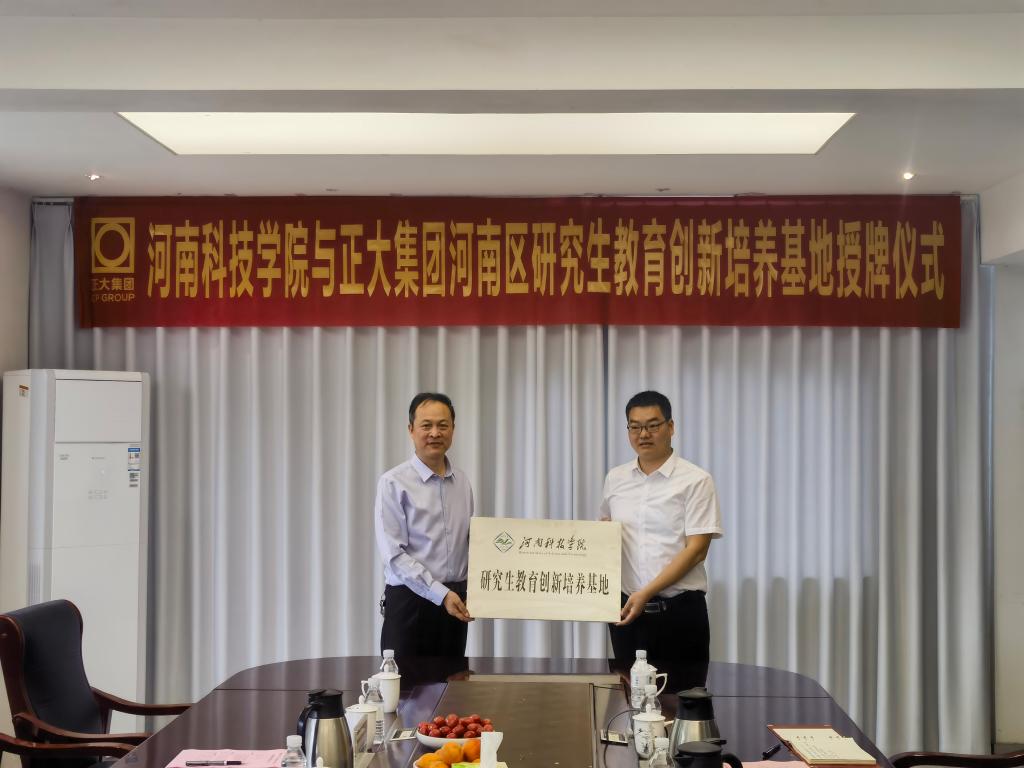 与正大集团(河南区)举行了合作建设“研究生创新培养基地”签约暨挂牌仪式。开封正大有限公司总经理张金生、正大集团河南区人力资源总监霍春阳、太阳城线上(中国)官方网站