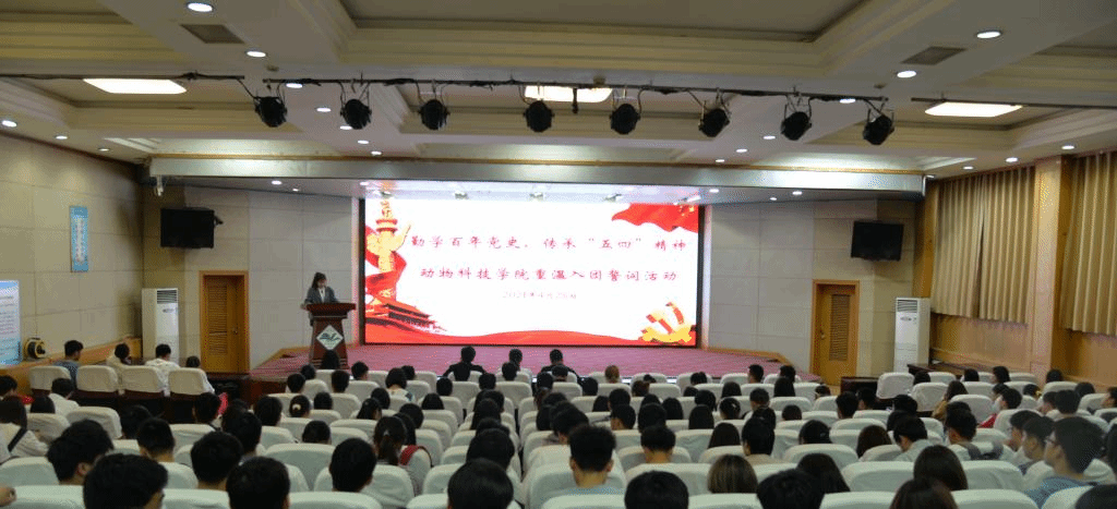 在图教201举行“勤学百年党史,传承五四精神”重温入团誓词活动。团委书记张书响,团委副书记刘璐、张帅鹏以及团员代表220余人参加。
