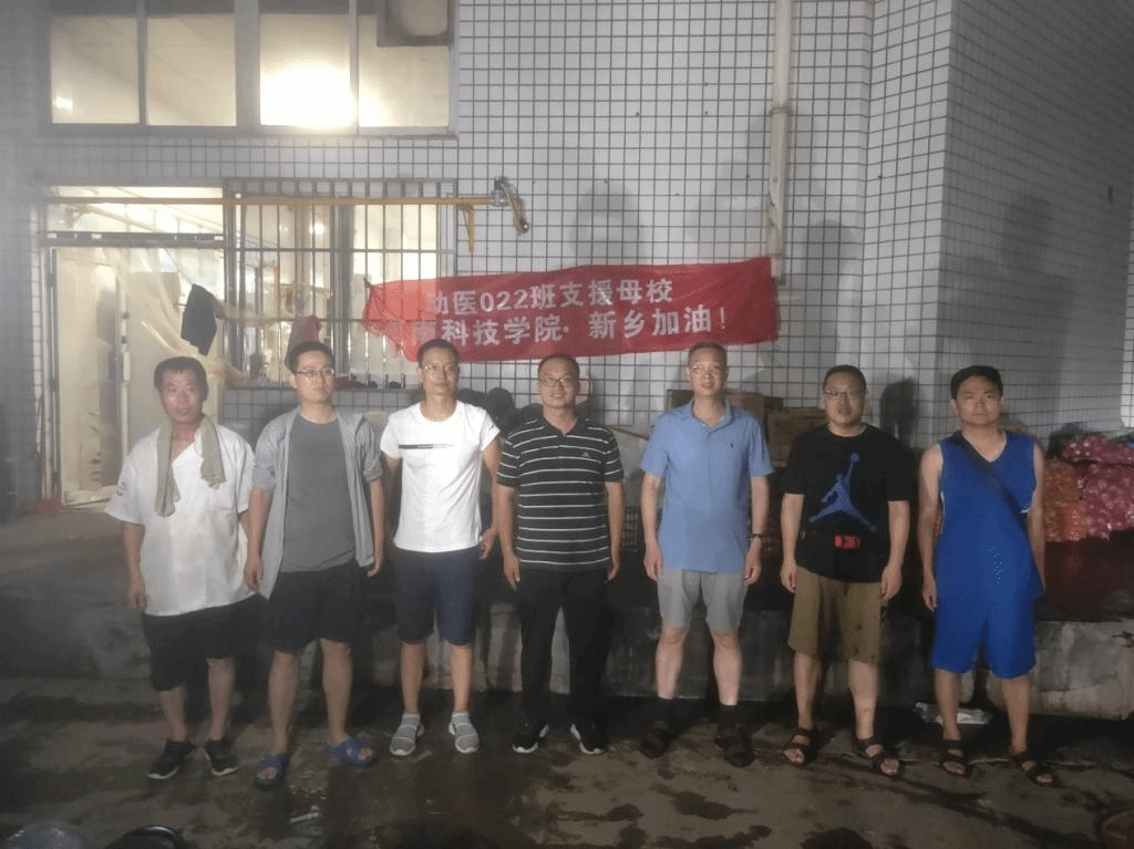 从倡议到动员、从采购到找车、从规划路线到顺利送达……非常时期,每一个环节都困难重重,但我们都确保在7个小时内完成送达!送到的不仅仅是物资,更多的是我们动医022班全班同学对母校无限的挂念和关心!可能大家不知道,我们同学中也有不少自身也深受洪灾影响损失巨大,而他们却依然一呼百应支援母校:渠瑞霞同学在郑州公司办公室被淹,一片狼藉,捐款1000元;路君瑞同学在郑州公司仓库被淹,货物还没来得及救出,捐款500元;魏俊飞同学在滑县,牛场里的洪水贴着站立的牛肚皮,捐款400元;乔红同学家就在新乡市停水停电,捐款600元;袁金同学在新乡县抗洪前线几天不着家、代木楞同学在洛阳作为人民警察正在全力防汛连续值班……