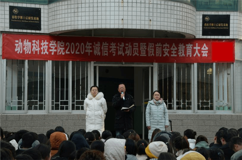 张书响就期末考试安排、考试纪律做了详细说明,要求同学们以端正的态度对待期末考试,合理安排时间,认真复习,按时参加考试,不弄虚作假,自觉遵守考场纪律。同时,他还具体介绍了寒假期间容易出现的各类安全问题,对寒假期间的安全事宜进行安排。会后,以班级为单位签署了《动物科学太阳城线上