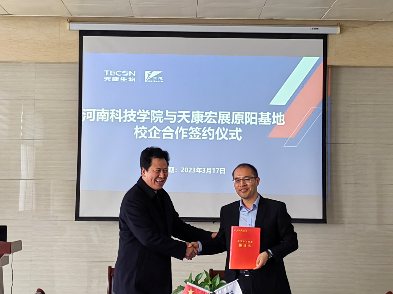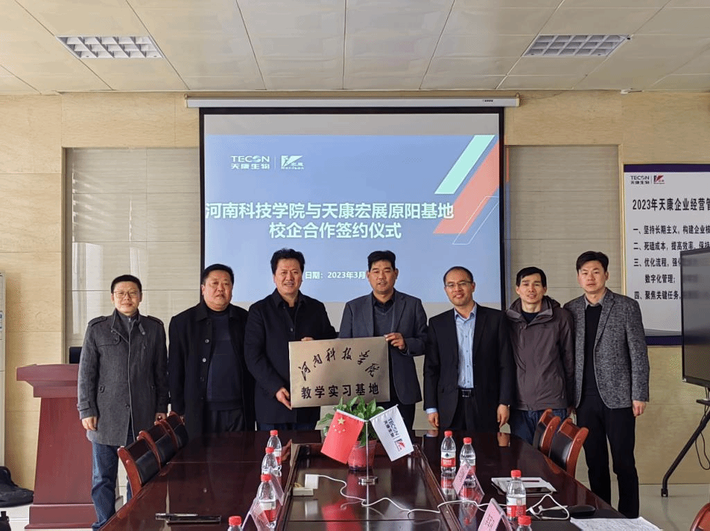 2023年3月17日下午,我院副院长陈金山、动科专业负责人苗志国、临床实验室主任钟华、韩庆功一行赴天康宏展原阳基地,参加了"本科教学实习基地"签约暨揭牌仪式,河南天康宏展实业有限公司人事部经理李军召、天康宏展原阳基地生产部场长王刘敏、汪军经理等参加了本次活动。揭牌仪式上,双方就建立校外本科教学实习基地的意义及其在培养人才方面的重要作用交换了意见。讨论了企业在智慧牧业专业开设过程中的积极作用,希望通过本平台,在教学、科研、社会服务等方面加强合作交流,共同发展、相互促进,从而为深入提高专业人才培养打下坚实的基础。